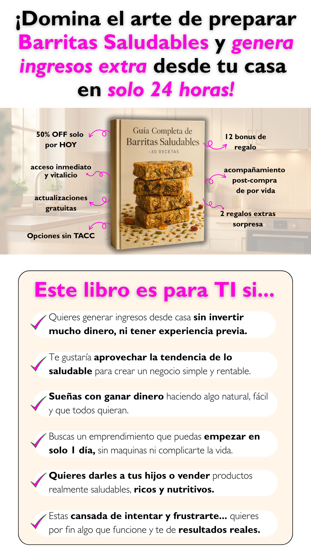 - Al completar tu compra, vas a recibir un correo con el asunto “Tu acceso a la Guía de Barritas Saludables”.